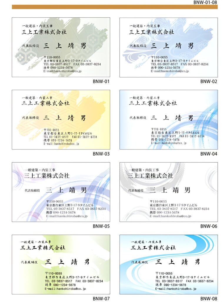 一般的なビジネス用名刺から、それぞれの職種に見合った高級名刺など